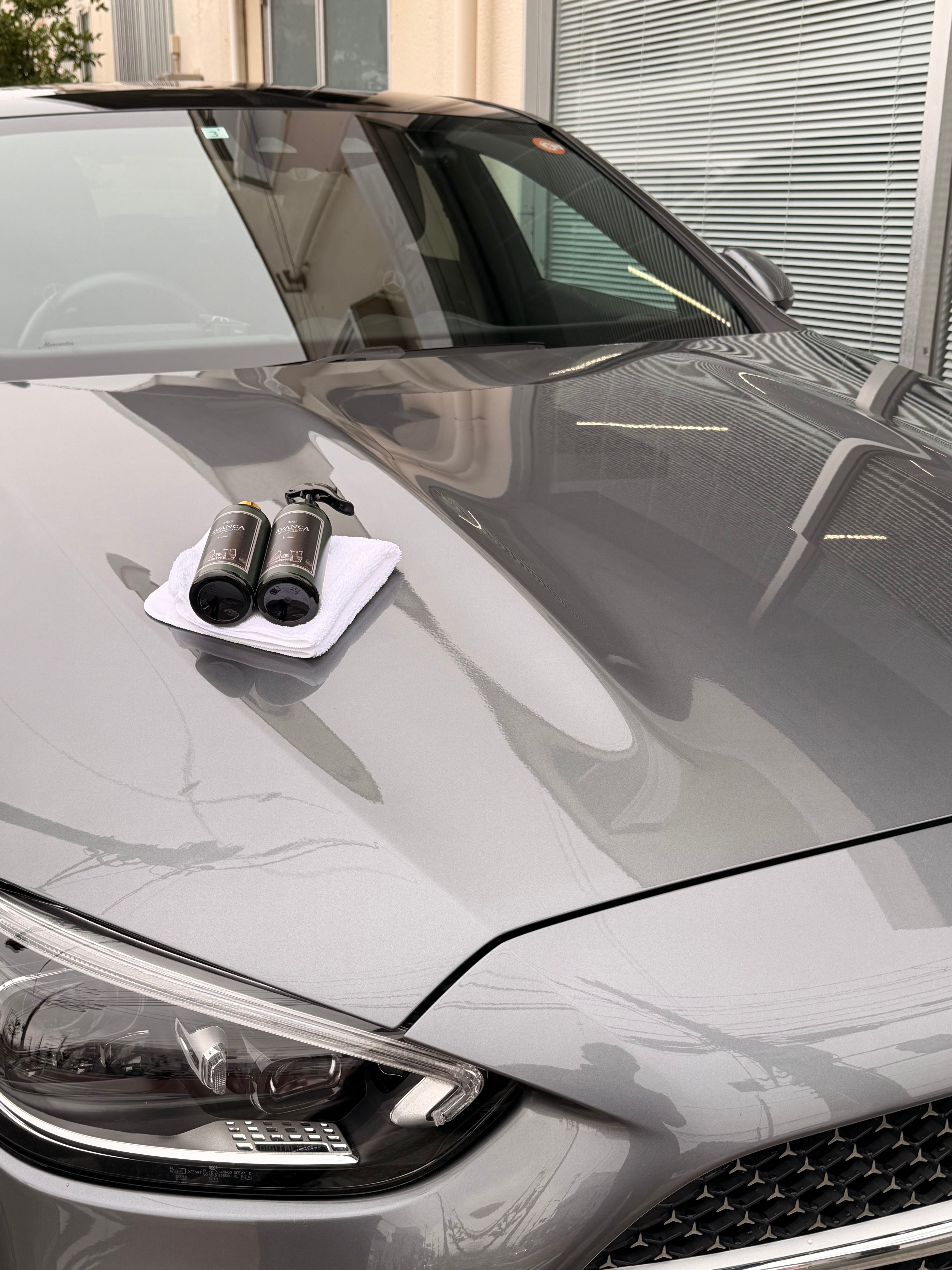 塗装面に密着し、水をまとったような艶感と、水を避けるような高撥水性を生み出します。