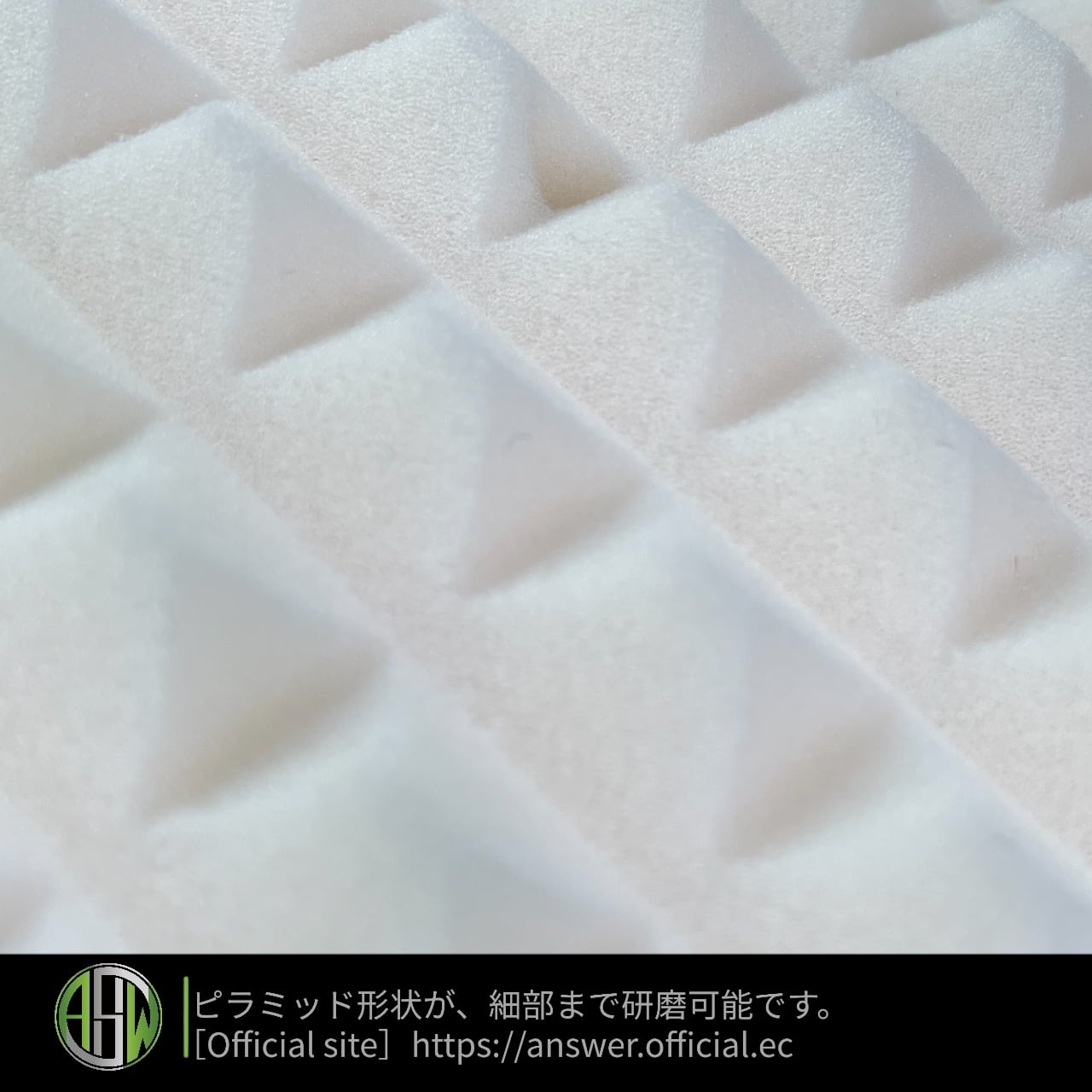 MELON PAD(メロンパッド)は、フォームパッドとして世界初となります。一部寝具として使われている、しっとりとしたフォームをポリッシングパッドに変換しました。さらにピラミッド形状に裁断したSHIZUKU PADのセカンドモデルになります。